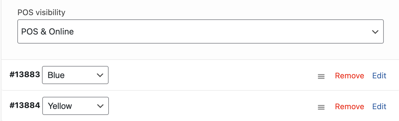 जब सक्षम किया जाता है, तो प्रत्येक उत्पाद को तीन विकल्पों के साथ एक POS Visibility सेटिंग मिलती है: